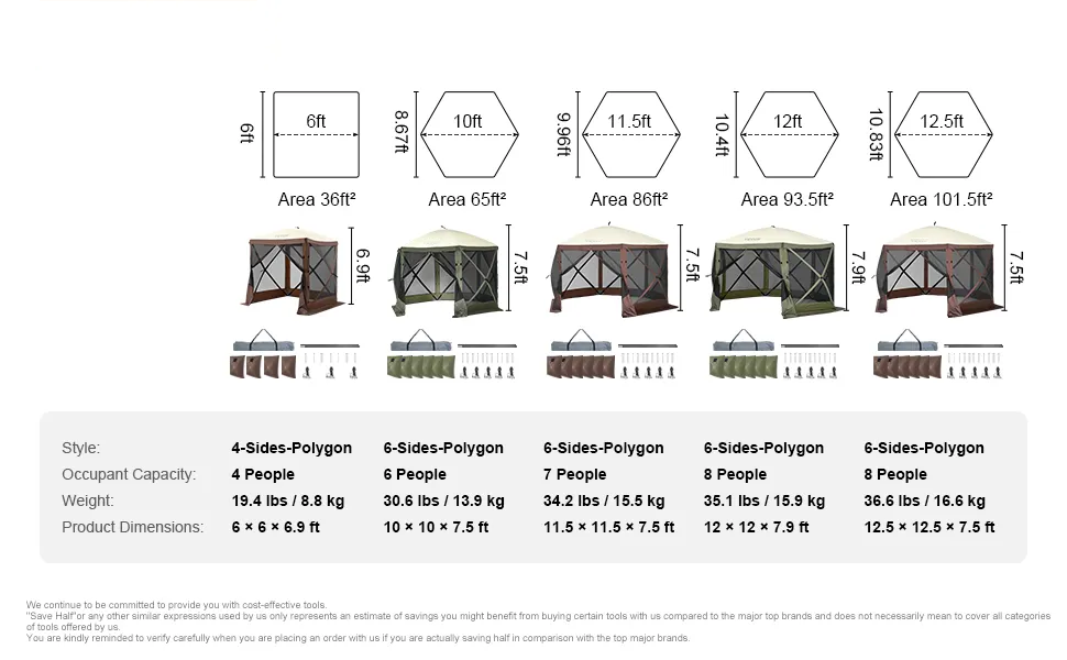 The screen houses and gazebos are suitable for many outdoor occasions, business or entertainment gatherings, backyard events, camping, picnics and parties, sports events, etc.