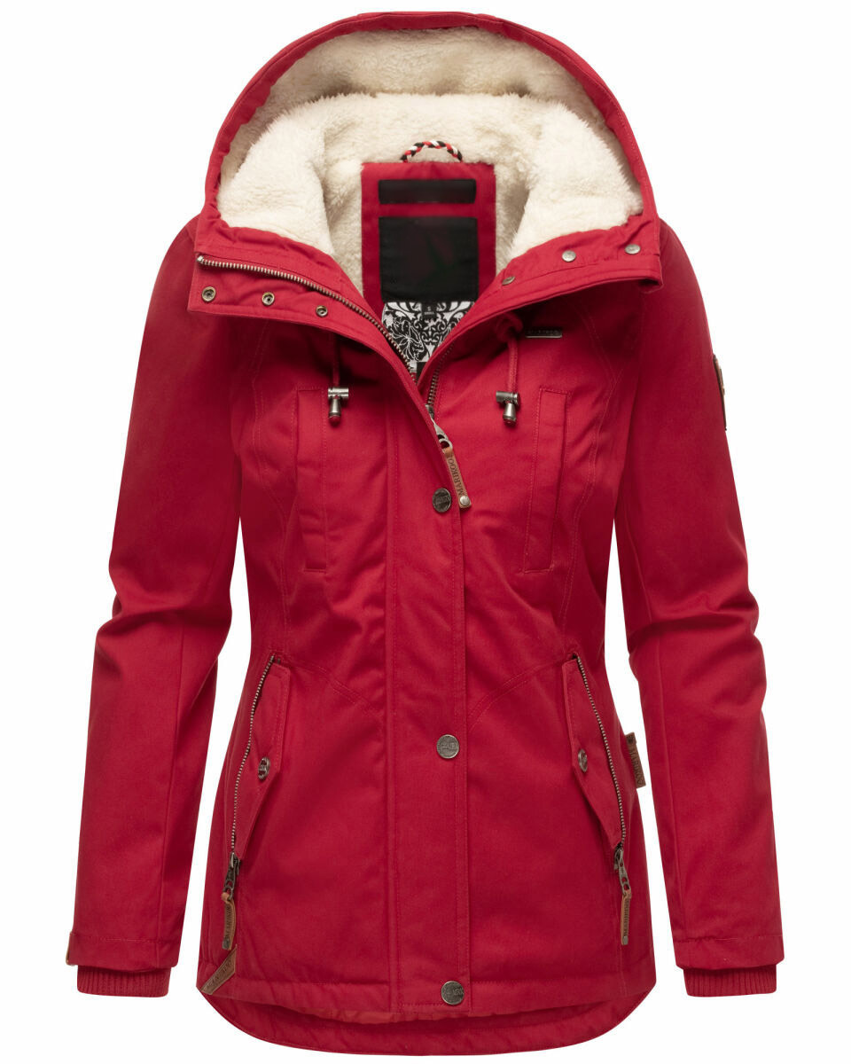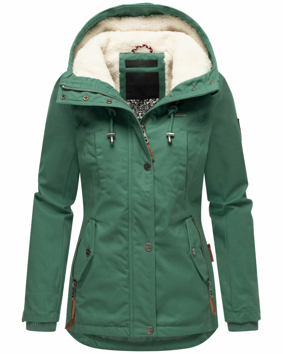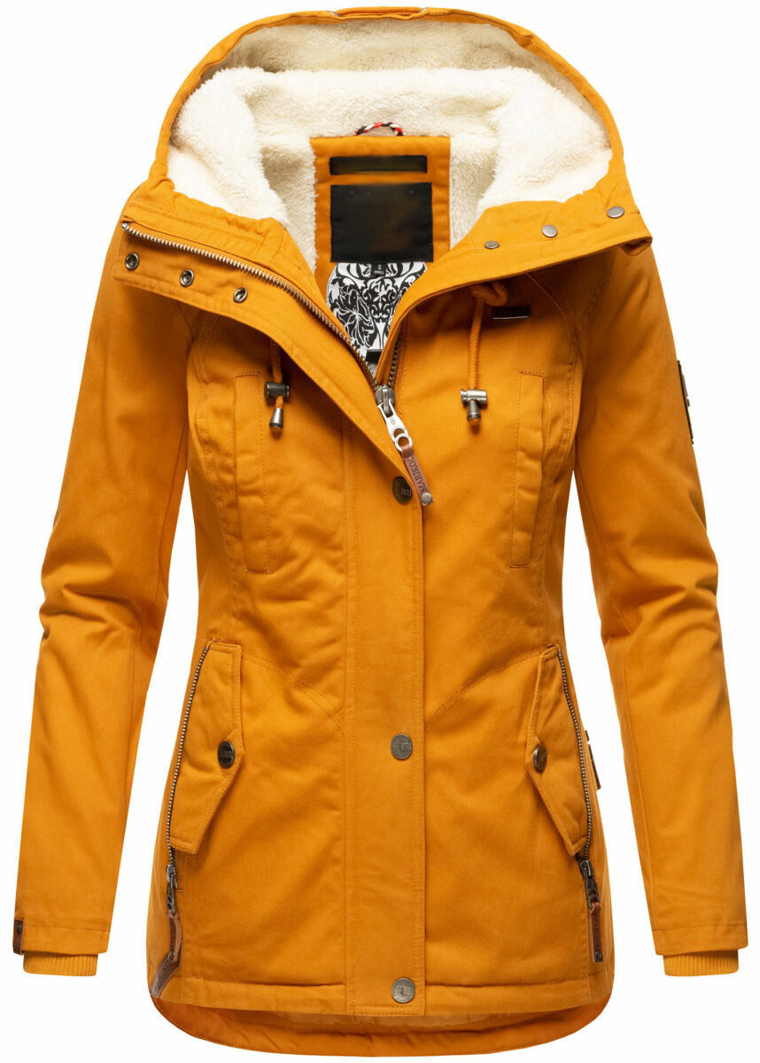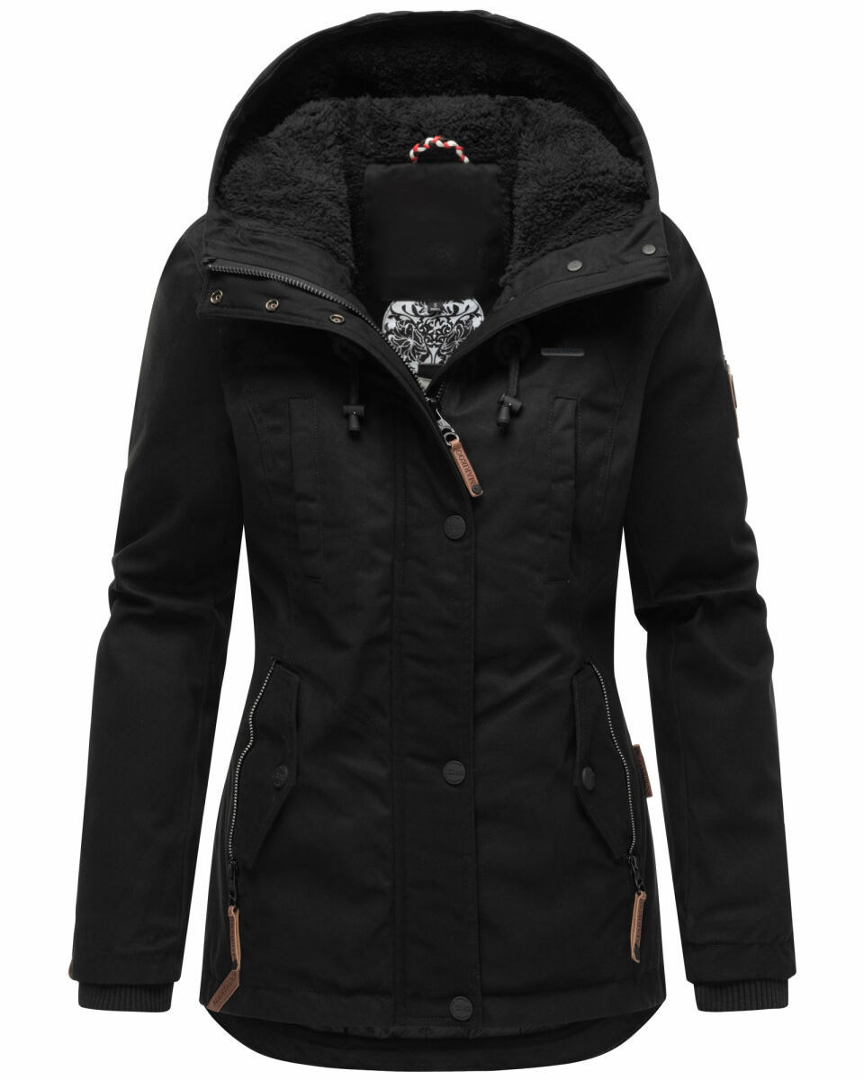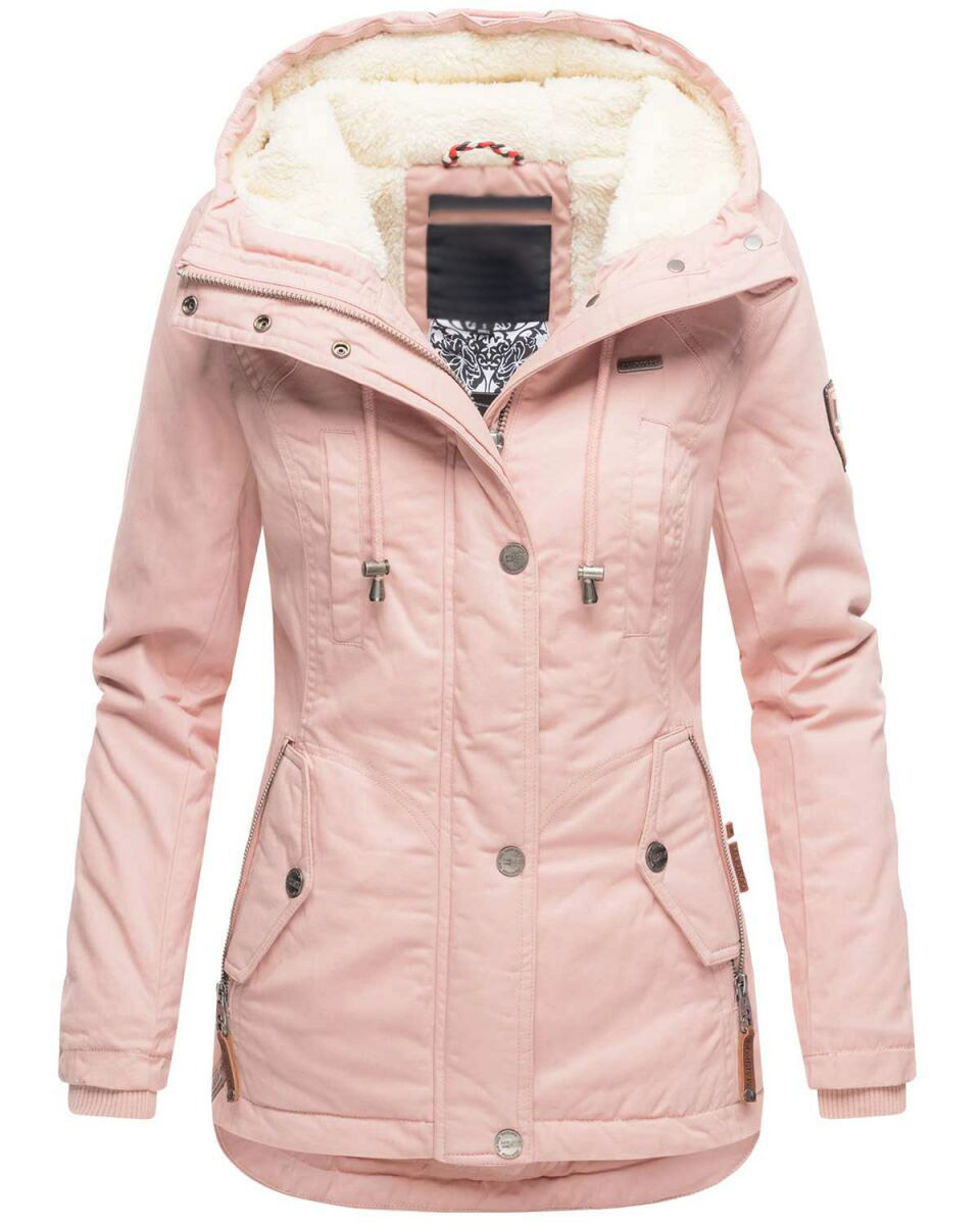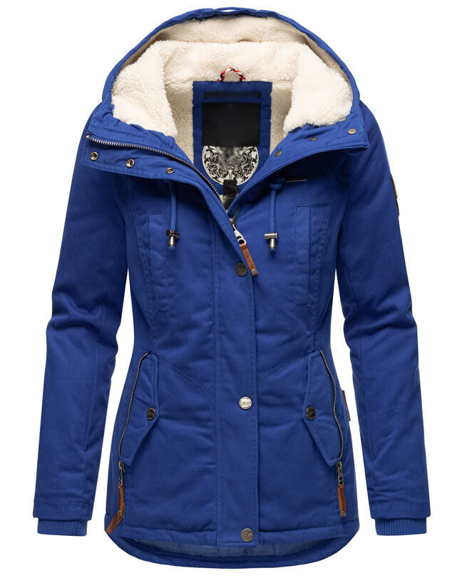 Het bovenste deel van de jas is aan de binnenkant voorzien van behaaglijk, warm teddybont. Ook de binnenkant van de capuchon is voorzien van wollige, warme teddybont.