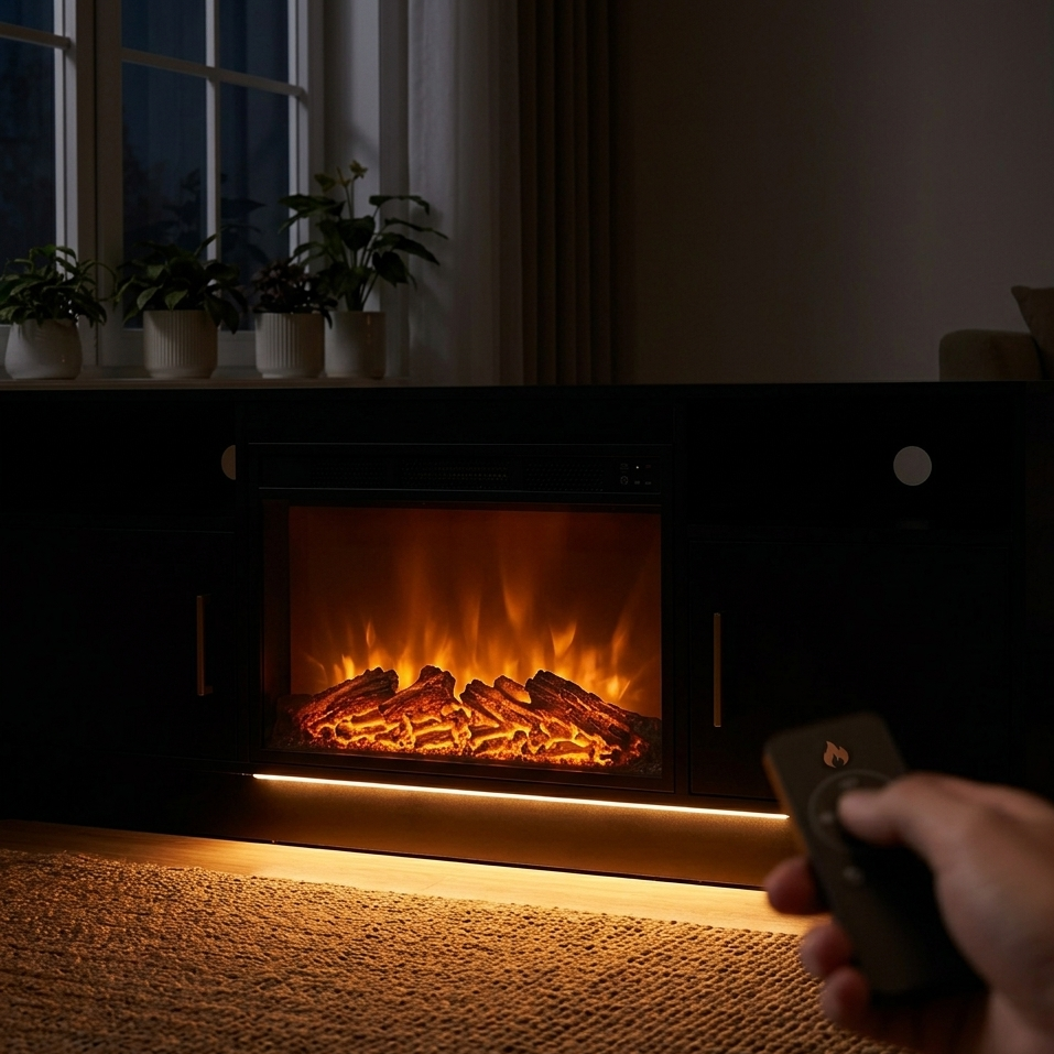 Pick your color, heat, and timer from the remote. The room takes care of itself.