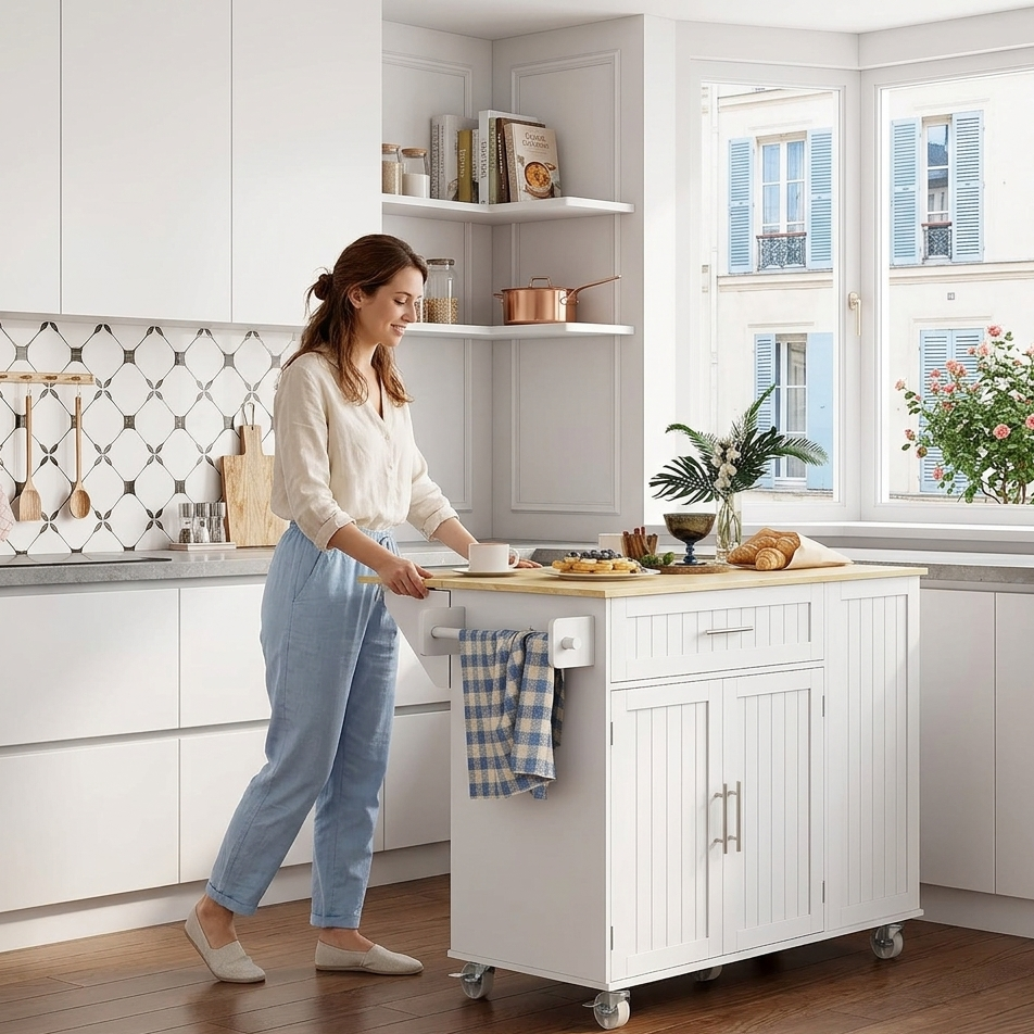 Fill the spice racks, slide your trash can in, load the cabinet and drawer. Your kitchen gets cleaner the moment you finish setting it up.